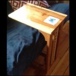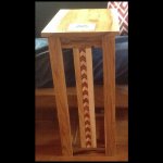 This cool asset to the cabin is made of hickory. This is a great little piece that sit under the edge of the sofa. It is a great place to set a computer or a cup of hot chocolate. I used a pattern from a May 2013 issu of Wood Magazine. I adapted it slightly and added the inlay that matches the other hickoy furniture in the cabin. It was a quick project built in one day. I finished it with a polyeurathan blend with boiled linseed oil and mineral spirits. Making the brace under the table very strong is critical to this build.